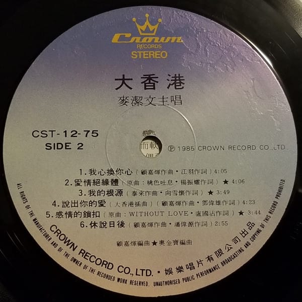 | Tracks | A1: 愛的尋覓 A2: 我是豪放 A3: 斷 A4: 小囉囌 A5: 怒劍狂花 A6: 曾經愛過 B1: 我心換你心 B2: 愛情絕緣體 B3: 我的根源 B4: 說出你的愛 B5: 感情的鎖扣 B6: 休說日後 |